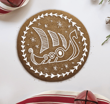 Starting with an illustration in Procreate, I brought the designs into Photoshop where I plopped the design into the ribbon scene and went to work adding shading, crumbs, and powdered sugar.
