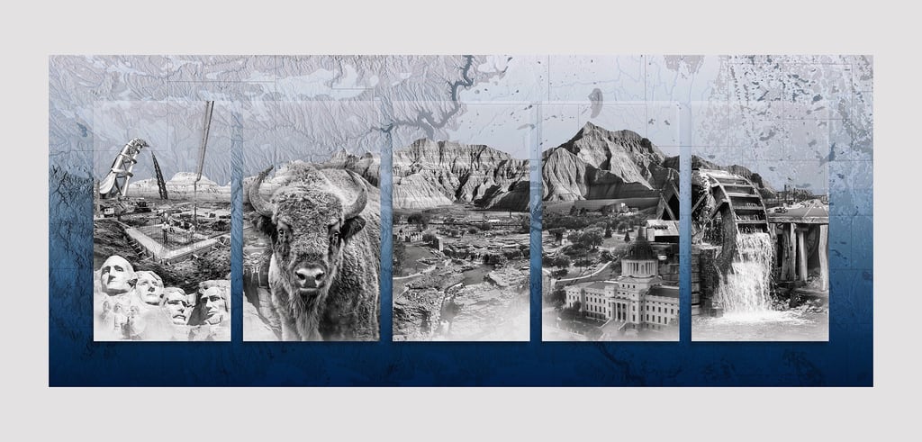 The design was created via Adobe Photoshop composites and is a celebration of South Dakota’s landscape as well as a blending of ISG's shared values of curiosity, adventure, and innovation.